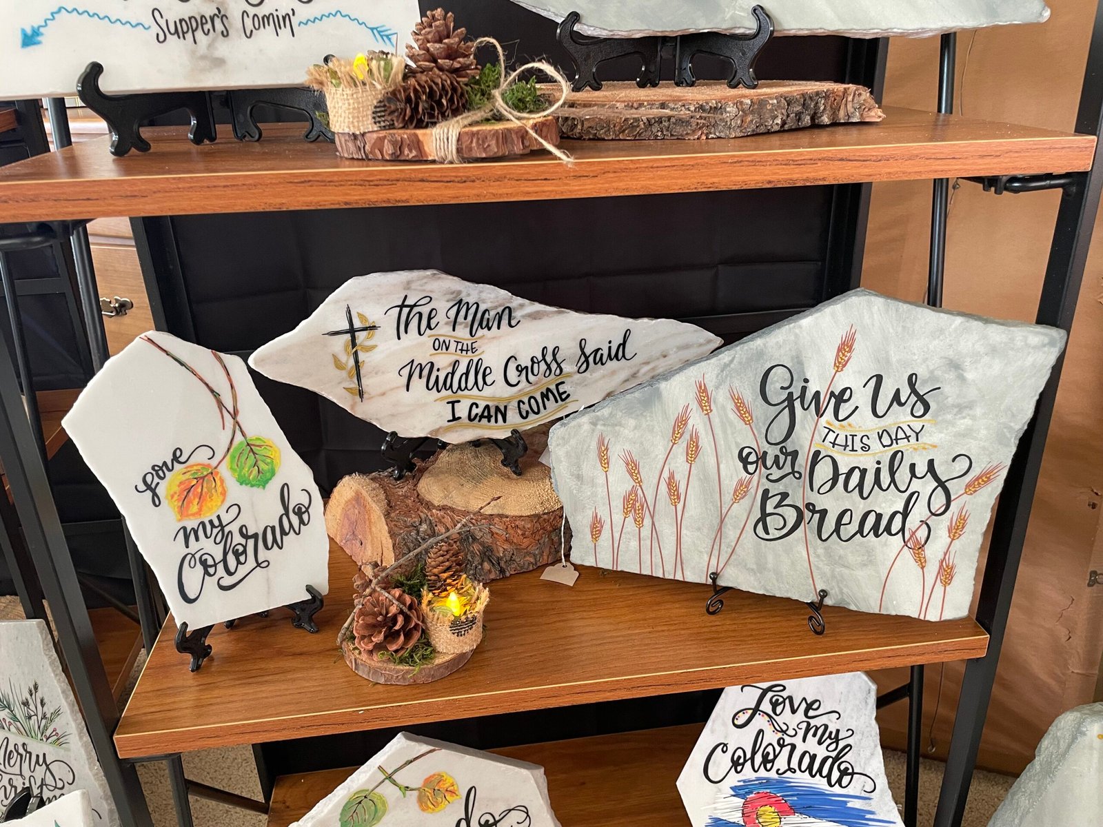 Jody, the artist behind Aug7thDesign, combines a lifelong passion for calligraphy and graphic design with a deep appreciation for the natural materials that can be found only in Colorado. Inspired by the rugged beauty of Colorado’s landscapes and its world-renown Marble, Jody began experimenting with it as a canvas, leading to the creation of unique, handcrafted pieces that reflect both personal artistry and the timeless allure of nature, with the occasional sarcastic quip.